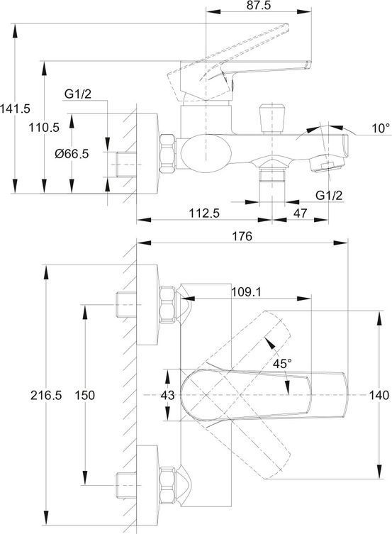 Смеситель для ванны Cersanit Moduo 64097, материал - латунь, цвет - хром.