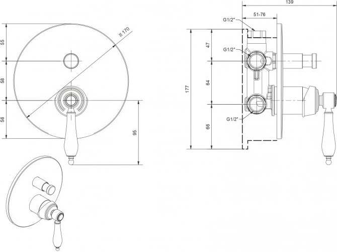 - Оснащение: скрытая монтажная часть, дивертор