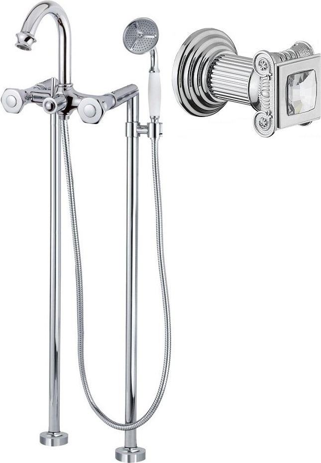 Смеситель для ванны Cezares APHRODITE-VDP-01-Sw с душевым гарнитуром, материал - латунь, ручки - Swarovski, цвет - хром.