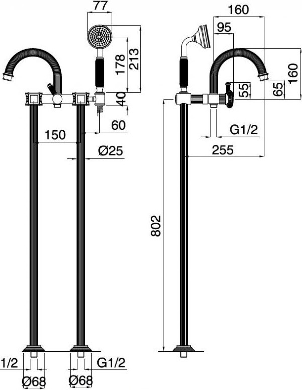 Характеристики напольный смеситель Cezares (APHRODITE-VDP-01-Sw)