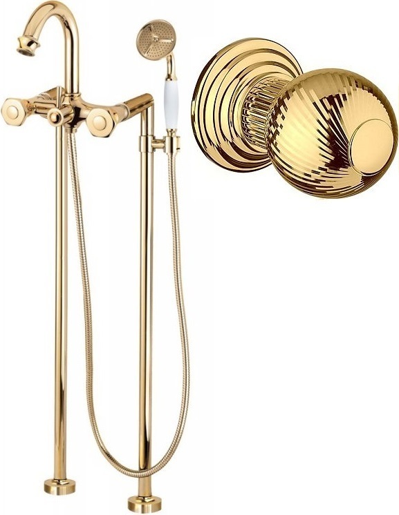 Смеситель для ванны Cezares APHRODITE-VDP-03/24-M с душевым гарнитуром, материал - латунь, ручки - металл, цвет - золото 24 карат.