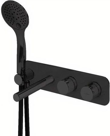 Смеситель для ванны Cezares CZR-B-VDM1-T-NOP со скрытой частью и душевым гарнитуром, материал латунь, цвет чёрный матовый.