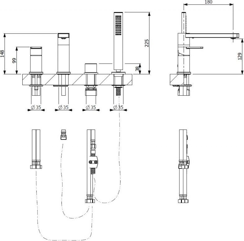 Характеристики смеситель на борт ванны Cezares (GLAM-BVDM4-01)