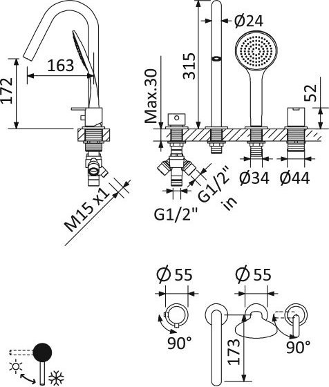 Характеристики смеситель на борт ванны Cezares (LEAF-BVDM4-01)