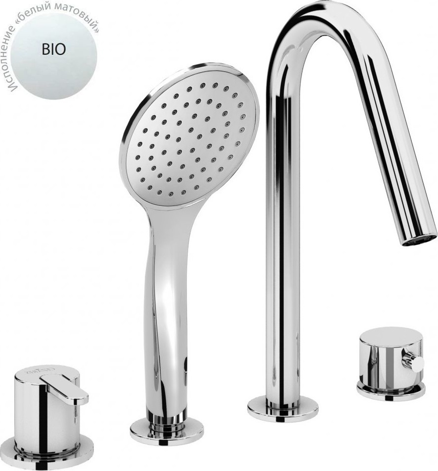 Смеситель для ванны Cezares LEAF-BVDM4-BIO, на 4 отверстия, материал - латунь, цвет - белый матовый.