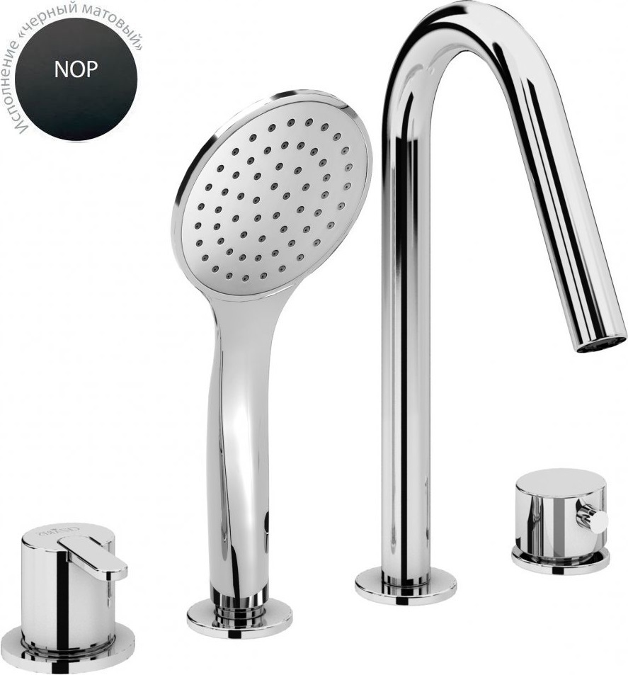 Смеситель для ванны Cezares LEAF-BVDM4-NOP, на 4 отверстия, материал - латунь, цвет - черный матовый.