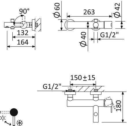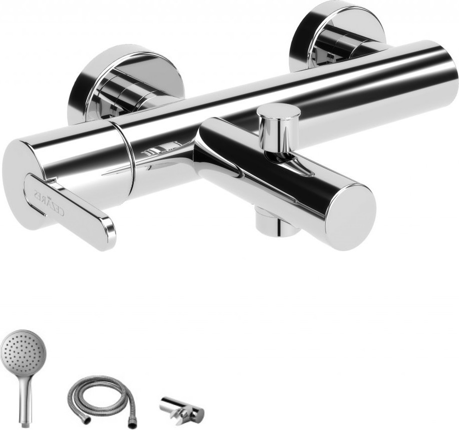 - Оснащение: смеситель, шланг 150 см, держатель, ручной душ
