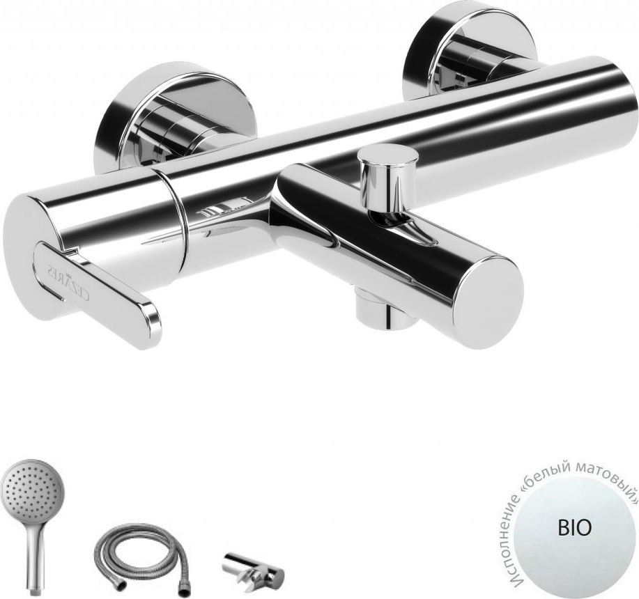 Смеситель для ванны Cezares LEAF-VD-BIO с душевым гарнитуром, материал - латунь, цвет - белый матовый.