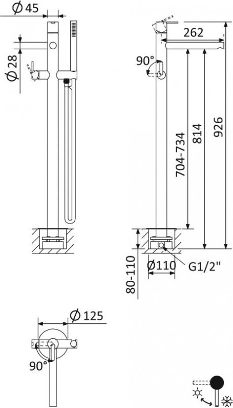 - Оснащение: душевой шланг, душевая лейка, аэратор, держатель для душевой лейки, дивертор