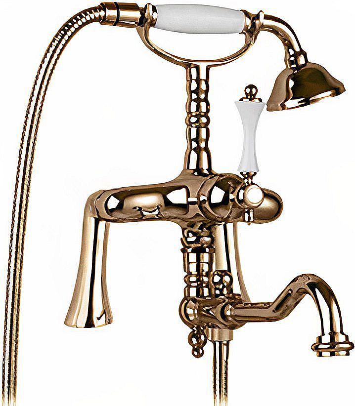 Смеситель для ванны Cezares MARGOT-PBV2-02-Bi с душевым гарнитуром, материал - латунь, цвет - бронза, ручки - белые.