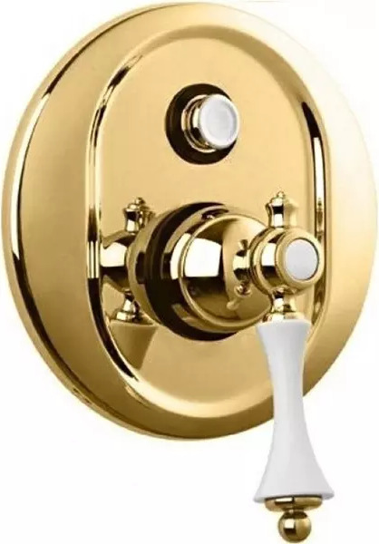 Смеситель для ванны Cezares MARGOT-VDIM-03/24-Bi, со скрытой частью, материал - латунь, цвет - золото 24 карат, ручка - белая.