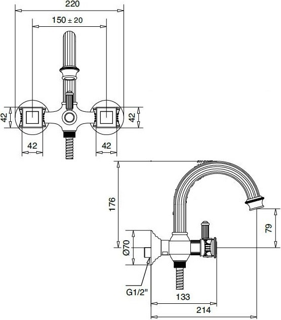 - Длина излива: 21,4 см
