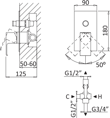 - Тип подводки: внутренний (скрытый) монтаж 1/2"