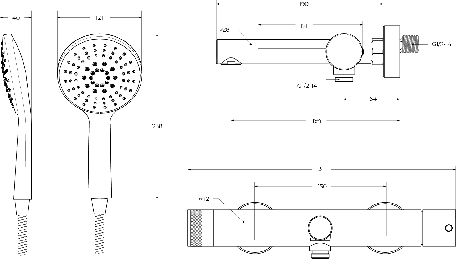 Смеситель для ванны Cezares RELAX-VD-GM с душевым гарнитуром, материал нержавеющая сталь, цвет оружейная сталь.