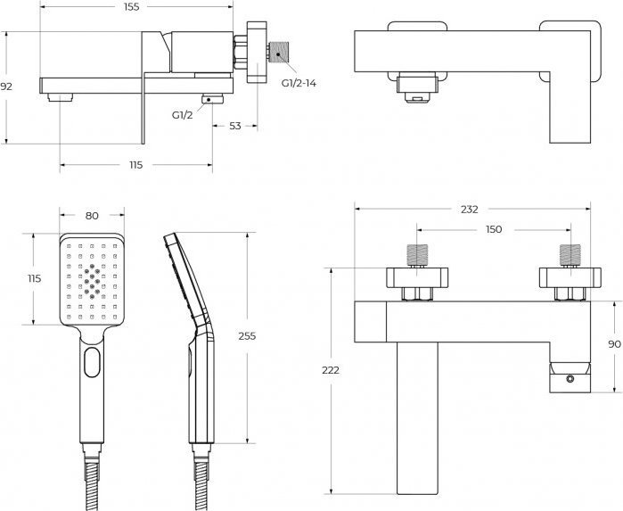 Смеситель для ванны Cezares SLIDER-VD-GM с душевым гарнитуром, материал нержавеющая сталь, цвет оружейная сталь.