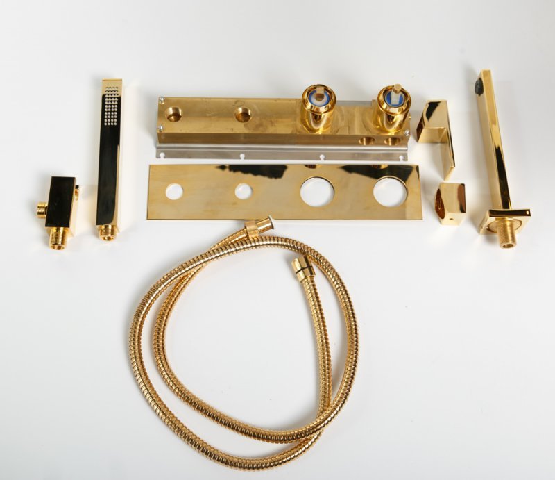 Смеситель для ванны Cezares UNIKA-VDM2-03/24, со скрытой частью и душевым гарнитуром, материал - латунь, цвет - золото.