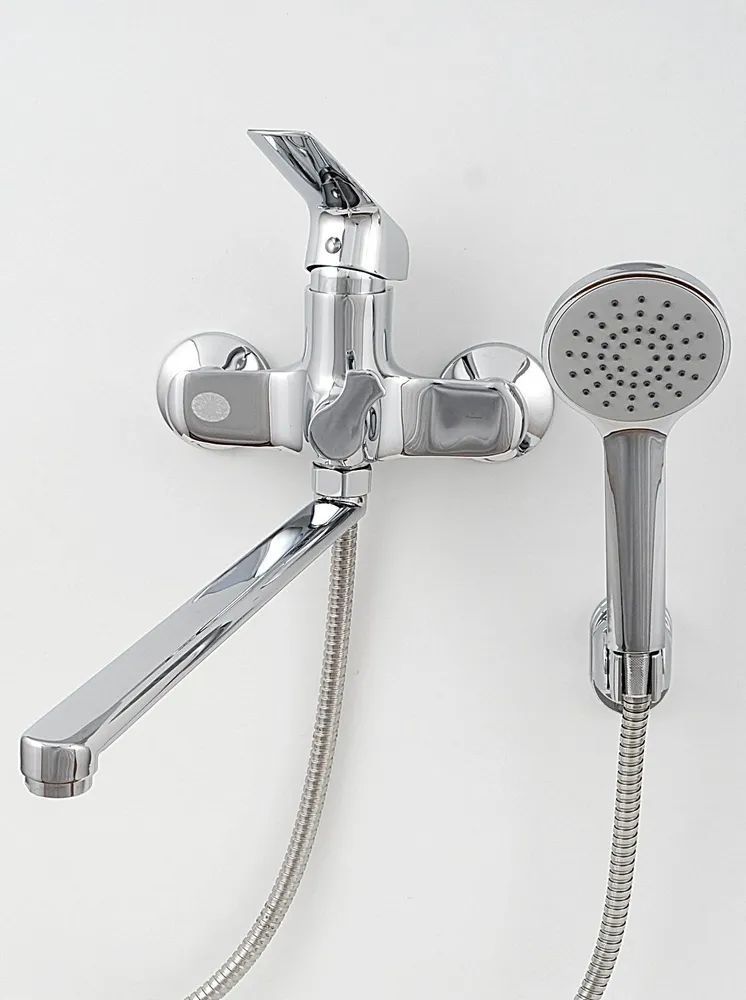 Смеситель для ванны Diadonna D80-222141 с душевым гарнитуром и длинным изливом. Материал - латунь, цвет - хром.