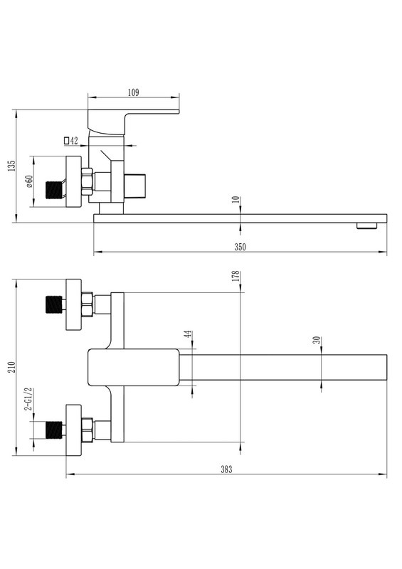 Характеристики смеситель для ванны с длинным изливом EvaGold (EG400015)