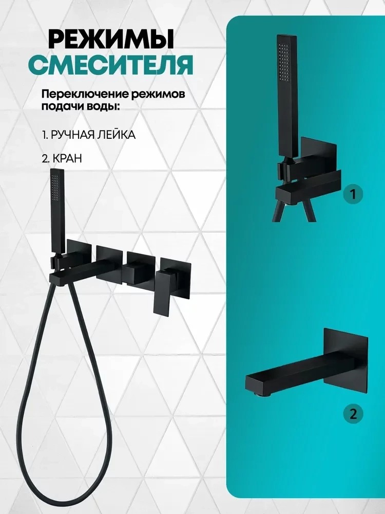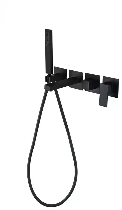 Смеситель для ванны Grocenberg GB5060BL с керамическим картриджем Kerox (Венгрия) и душевым гарнитуром, материал латунь, цвет чёрный матовый.