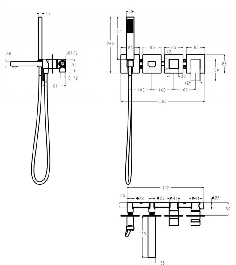 - Ручная лейка: 20 х 3,5 см (1 режим)