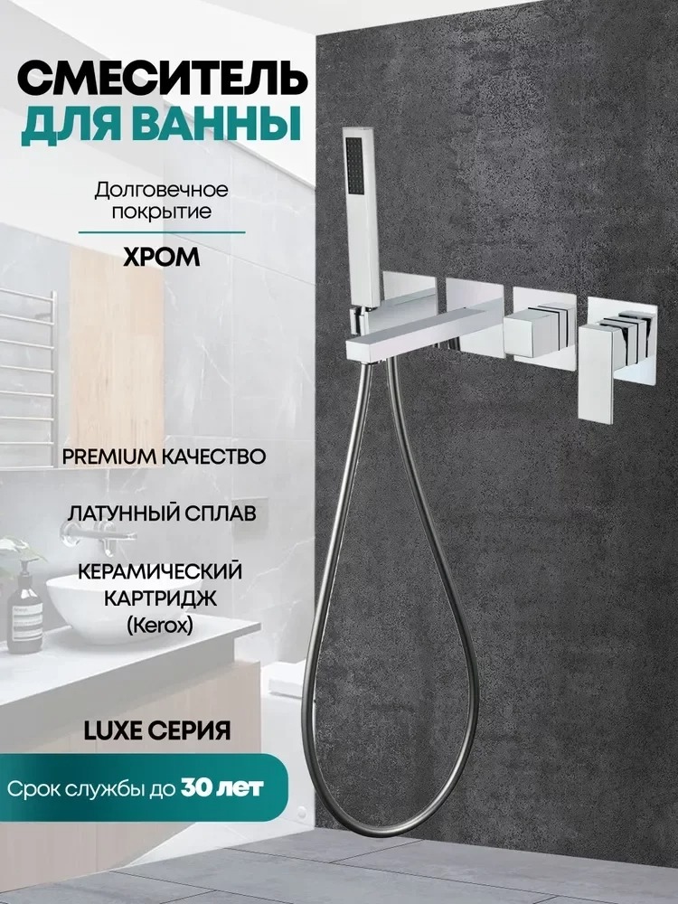 Смеситель для ванны Grocenberg GB5060CR с керамическим картриджем Kerox (Венгрия) и душевым гарнитуром, материал латунь, цвет хром.