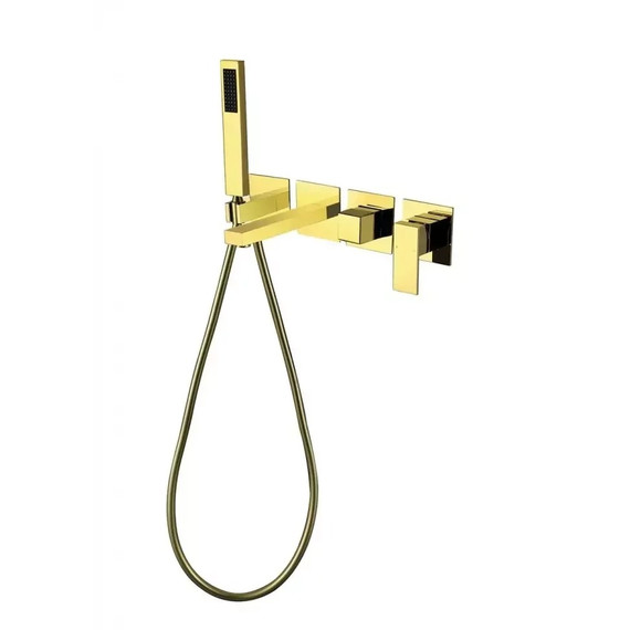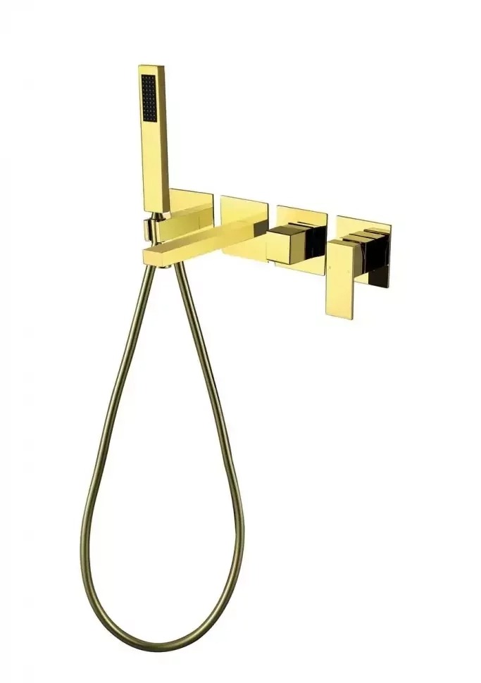 Смеситель для ванны Grocenberg GB5060GO с керамическим картриджем Kerox (Венгрия) и душевым гарнитуром, материал латунь, цвет золото.