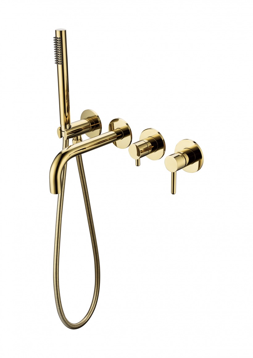 Смеситель для ванны Grocenberg GB5070GO с душевым гарнитуром, материал латунь, цвет золото.