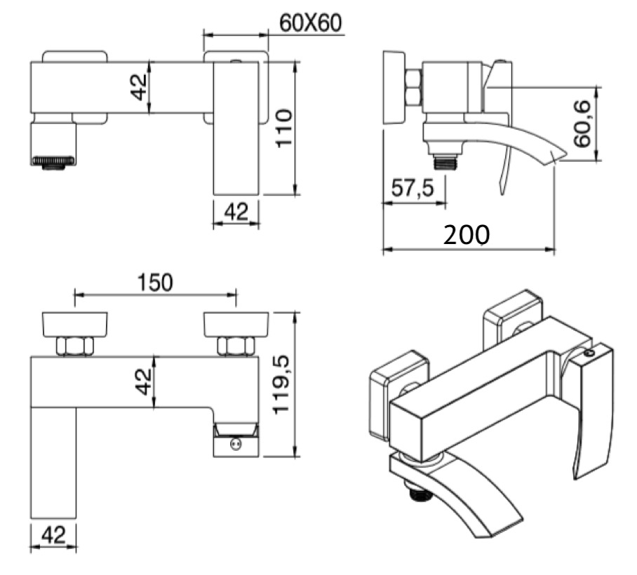 Характеристики смеситель для ванны Grocenberg (GB8007BR)
