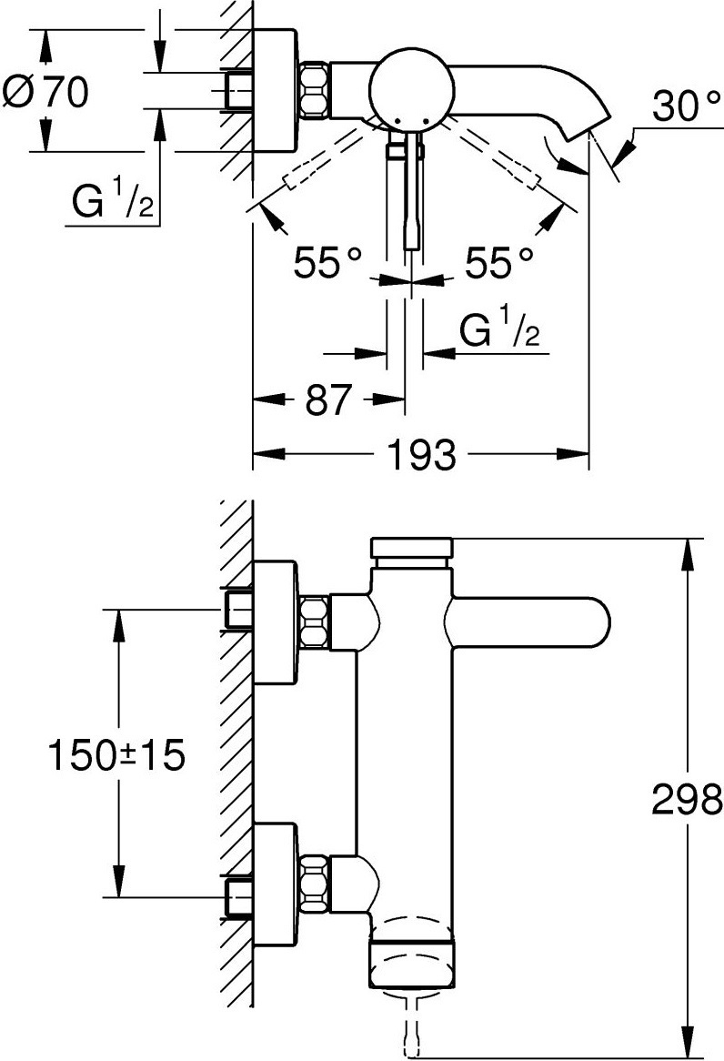 Смеситель для ванны Grohe Essence 33624001, материал - латунь, цвет - хром.