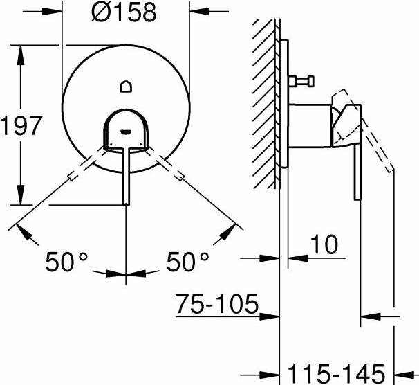 - с настенными розетками GROHE QuickFix (скрытые эксцентрики, уплотнение, скрытый монтаж)