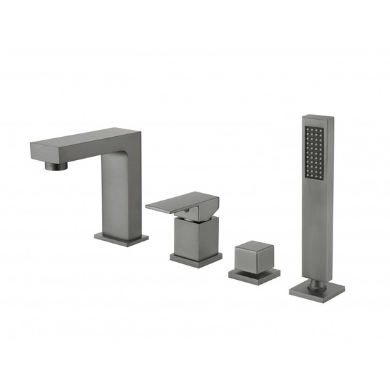 Смеситель для ванны Groсenberg GB6008-1BG, с выдвижным душем, на четыре отверстия, материал латунь, цвет графит.