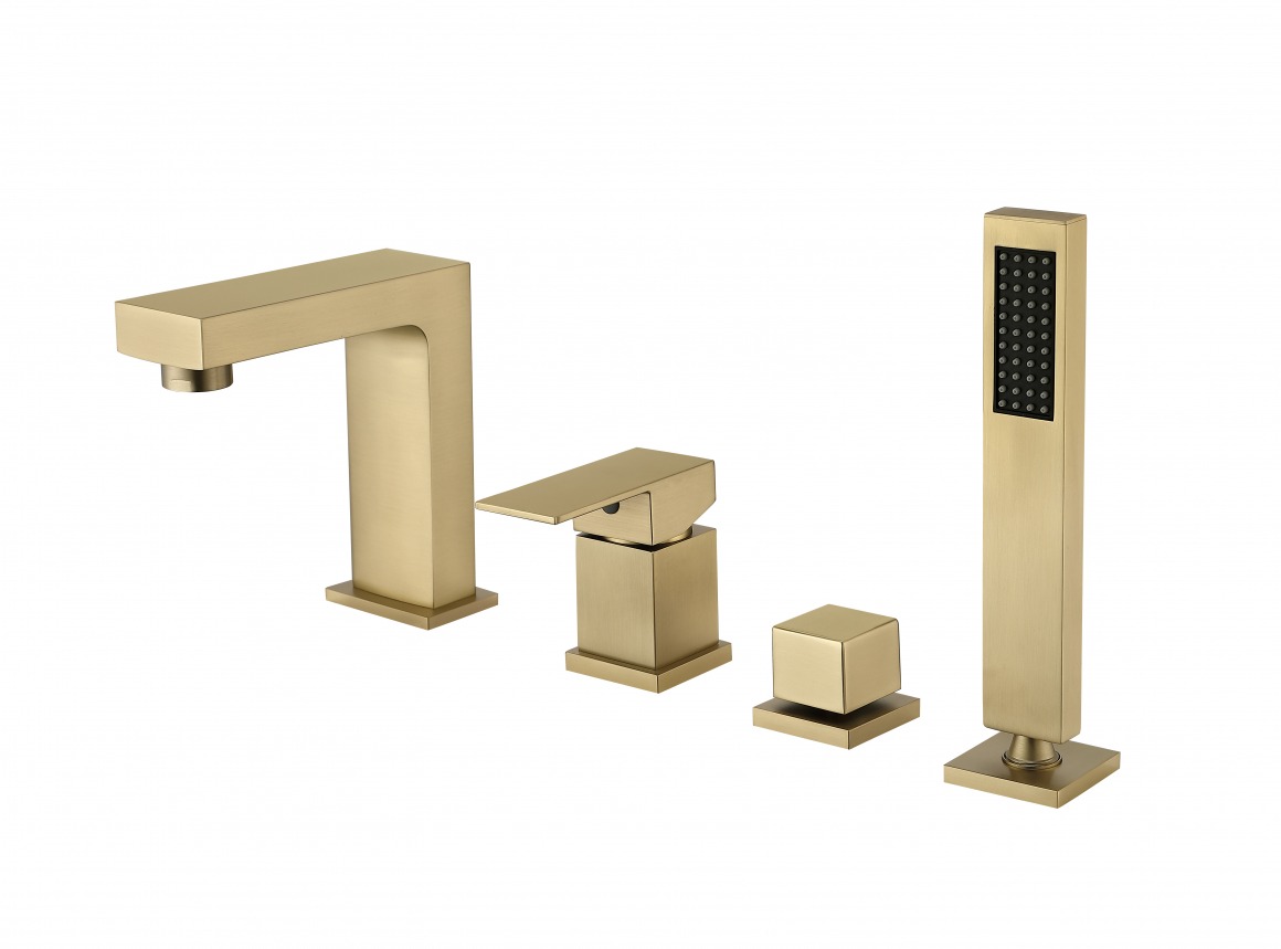 Смеситель для ванны Groсenberg GB6008-1MG, с выдвижным душем, на четыре отверстия, материал латунь, цвет матовое золото.