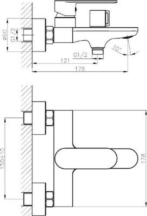 Смеситель для ванны Haiba HB60590, с душевым гарнитуром. Материал - латунь, цвет - хром.