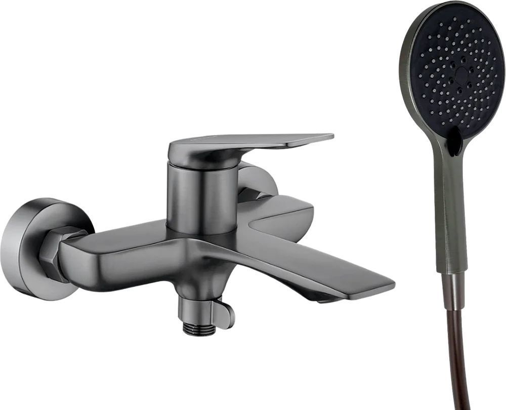 Смеситель для ванны Haiba HB60816-3 с душевым гарнитуром. Материал - латунь, цвет - графит.