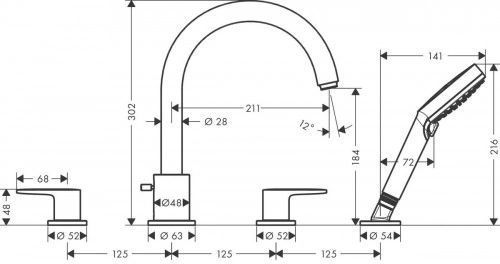 Характеристики смеситель на борт ванны Hansgrohe (71456000)