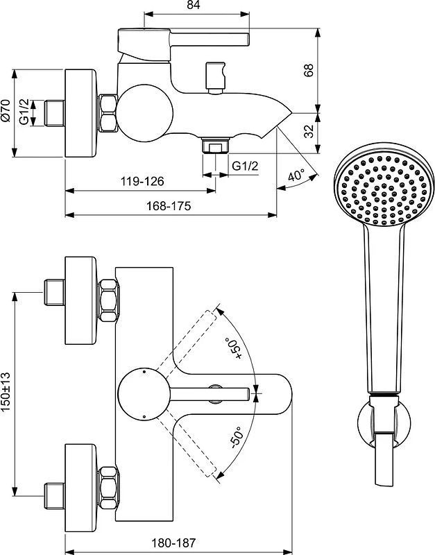 Смеситель для ванны Ideal Standard Ceraline BC270AA с душевым гарнитуром, материал - латунь, цвет - хром.