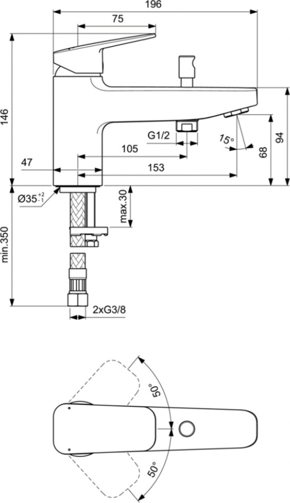 Характеристики смеситель на борт ванны Ideal Standard (BD257XG)