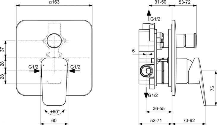 - картридж 47 мм с функцией HWTC (ограничение максимальной температуры горячей воды)