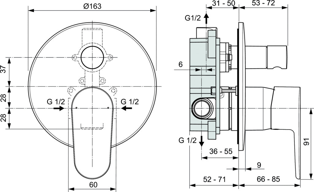 - встраиваемый смеситель для ванны/душа