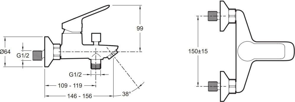- Длина излива: 15.6 см