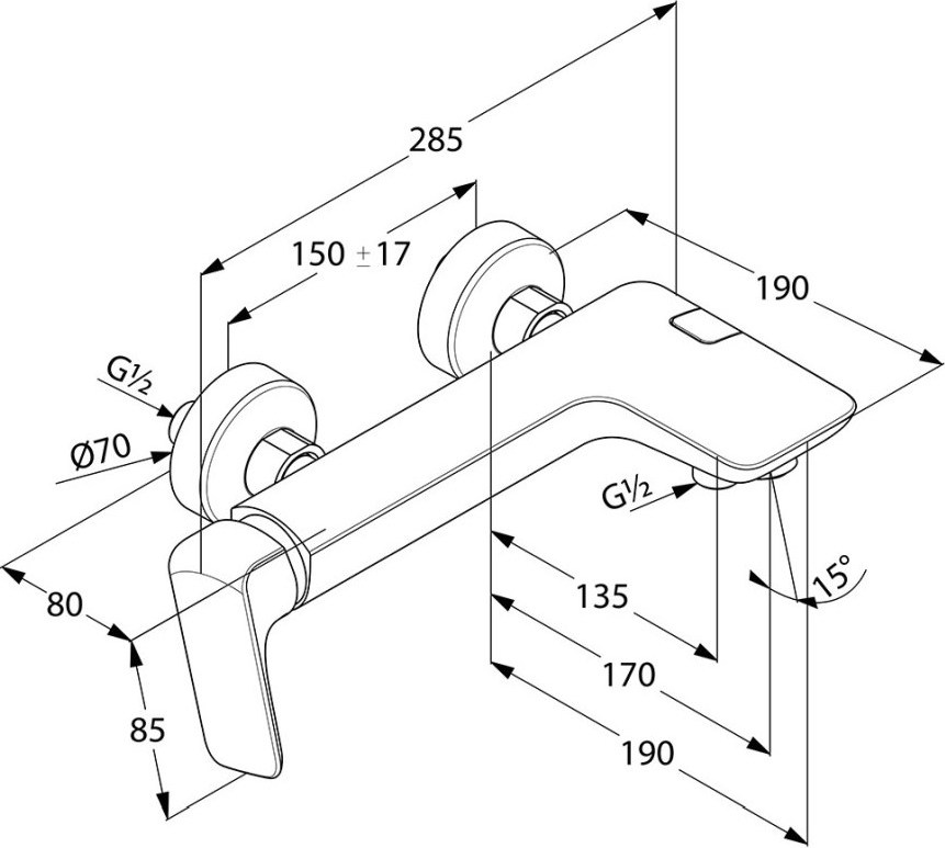 - ванна: расход воды 20 л/мин при давлении 3 бара