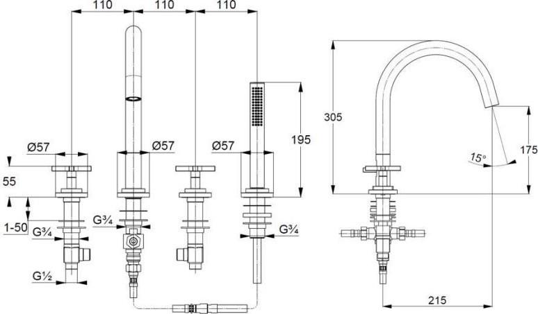Смеситель для ванны Kludi Nova Fonte Classic 204250520, на 4 отверстия, материал - латунь, цвет - хром.