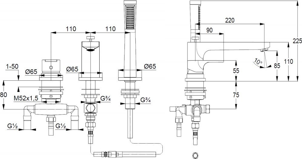 Характеристики смеситель на борт ванны Kludi (484480565)
