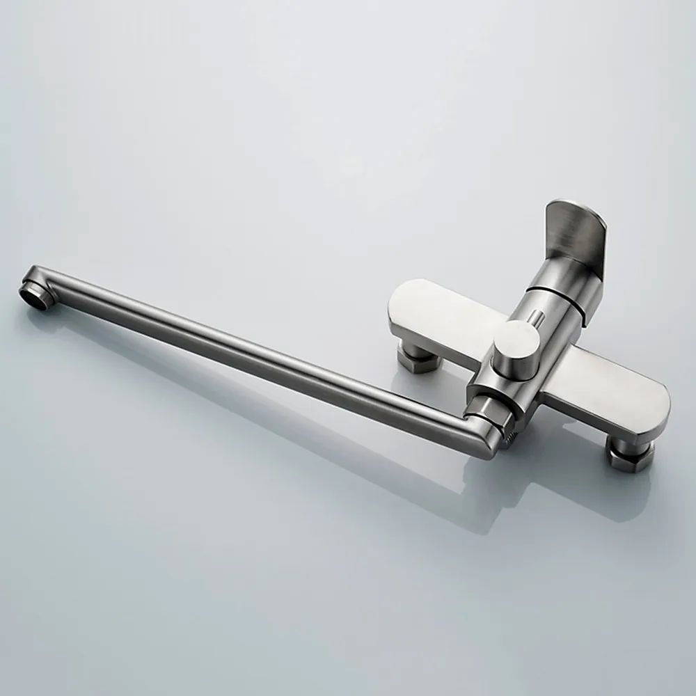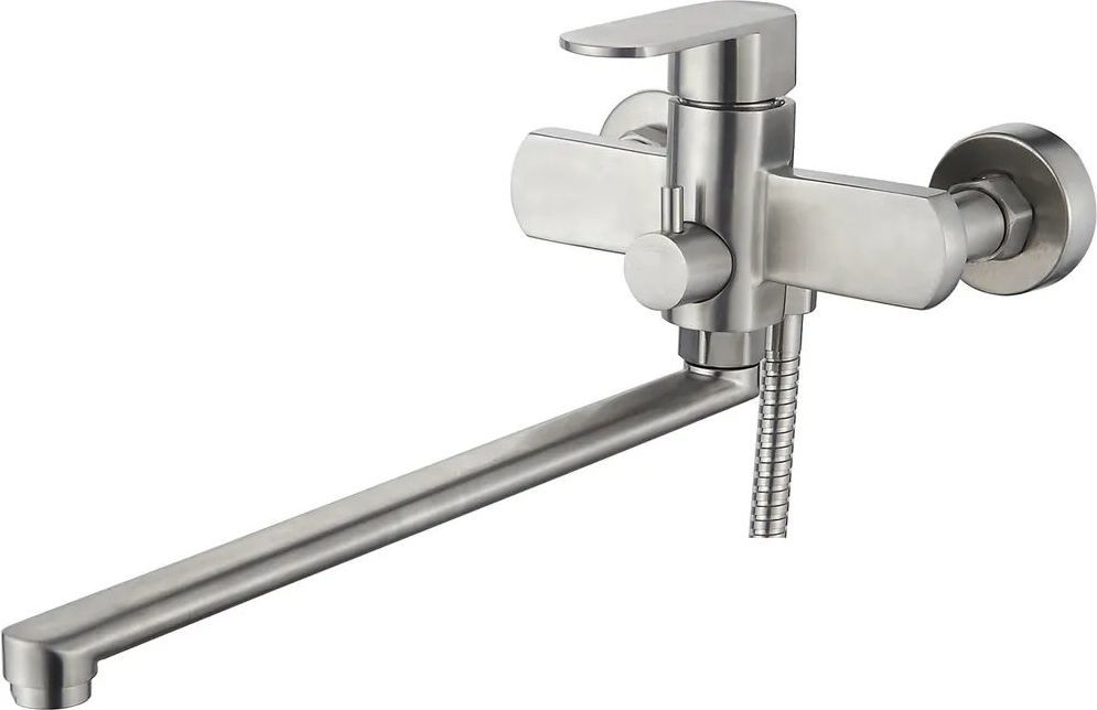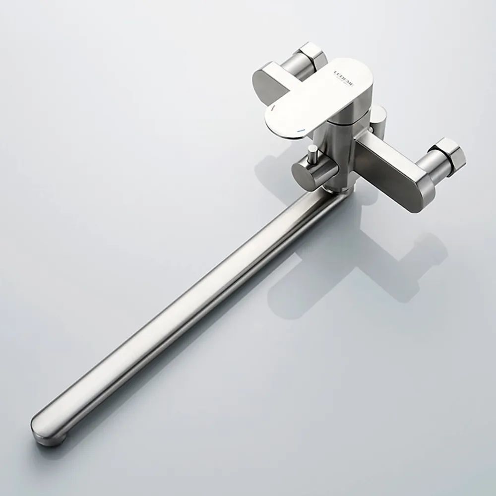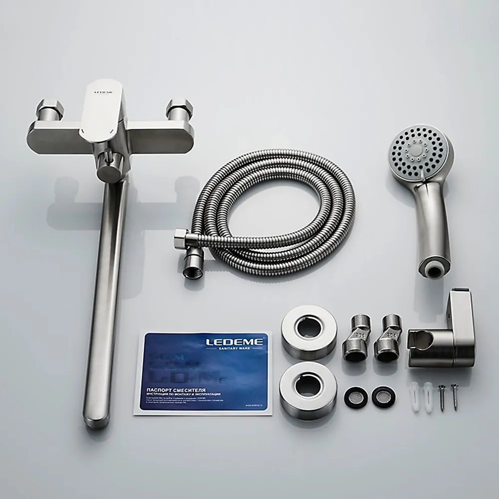 Смеситель для ванны Ledeme L72216 с душевым гарнитуром и длинным изливом, материал нержавеющая сталь, цвет нержавеющая сталь.