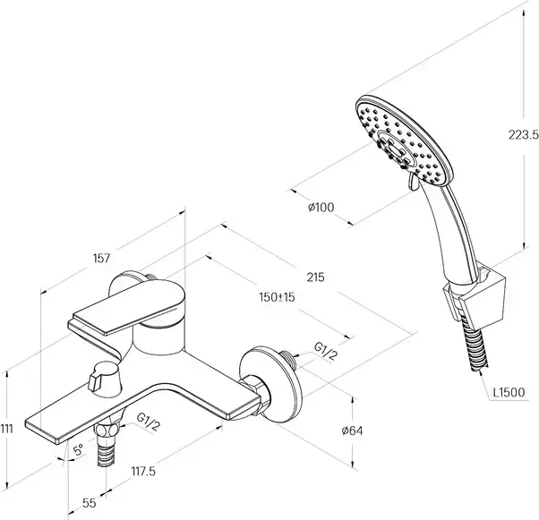 - Ручная лейка из прочного ABS-пластика, ПВХ-шланг (1,5 м) в оплетке из нержавеющей стали и крепеж идут в комплекте.