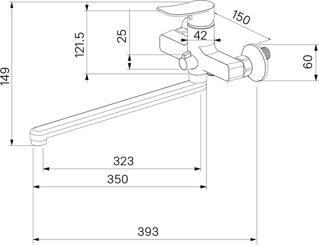 Описание смеситель для ванны с длинным изливом Milardo DEMSB00M10