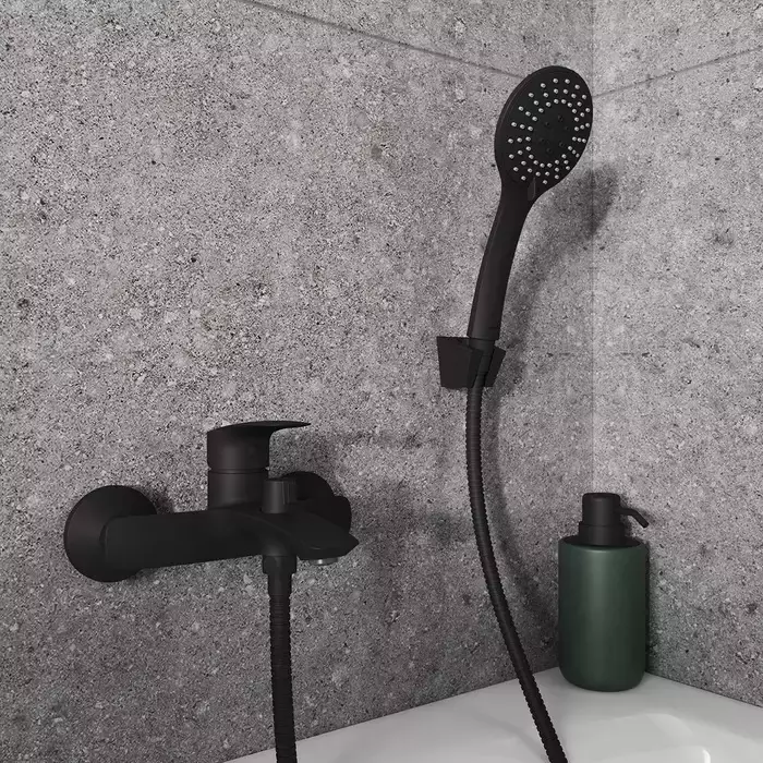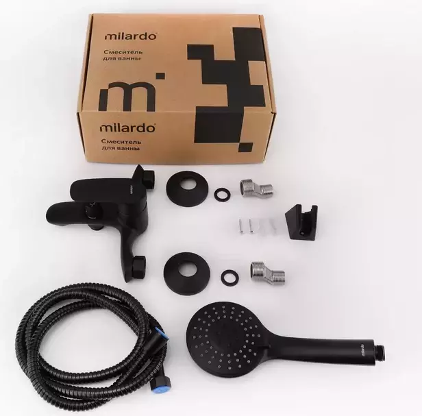 Смеситель для ванны Milardo Rora RORBL00M02 с душевым гарнитуром, материал - латунь, цвет - чёрный матовый.
