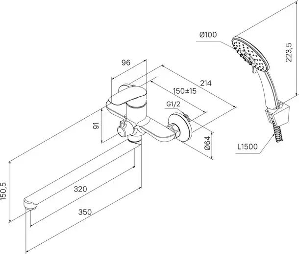 - Ручная лейка из прочного ABS-пластика, ПВХ-шланг (1,5 м) в оплетке из нержавеющей стали и крепеж идут в комплекте.