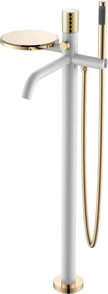 Смеситель для ванны напольный Boheme Stick с душевым гарнитуром, материал латунь, цвет white gold