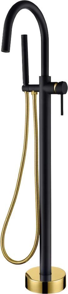 Смеситель для ванны напольный Boheme Uno с душевым гарнитуром, материал латунь, цвет чёрный/золото.